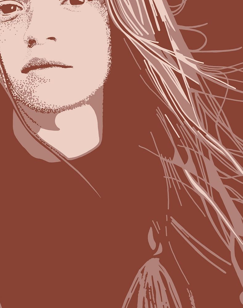 Portrait numérique d'une jeune fille aux cheveux roux dans trois tons de brun-rouge. J'ai tellement aimé la couleur de ses cheveux que j'ai voulu qu'elle domine dans le dessin et que le portrait s'exprime à travers ce contraste de couleurs.