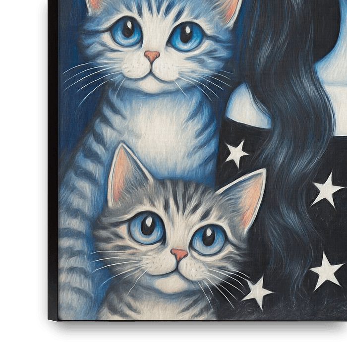 Acheter ce art numérique Fillette avec huit chats par Jutta Maria Pusl sur toile, aluminium, ArtFrame ou photographie (encadrée), impression d'art en haute définition et tout type de format.