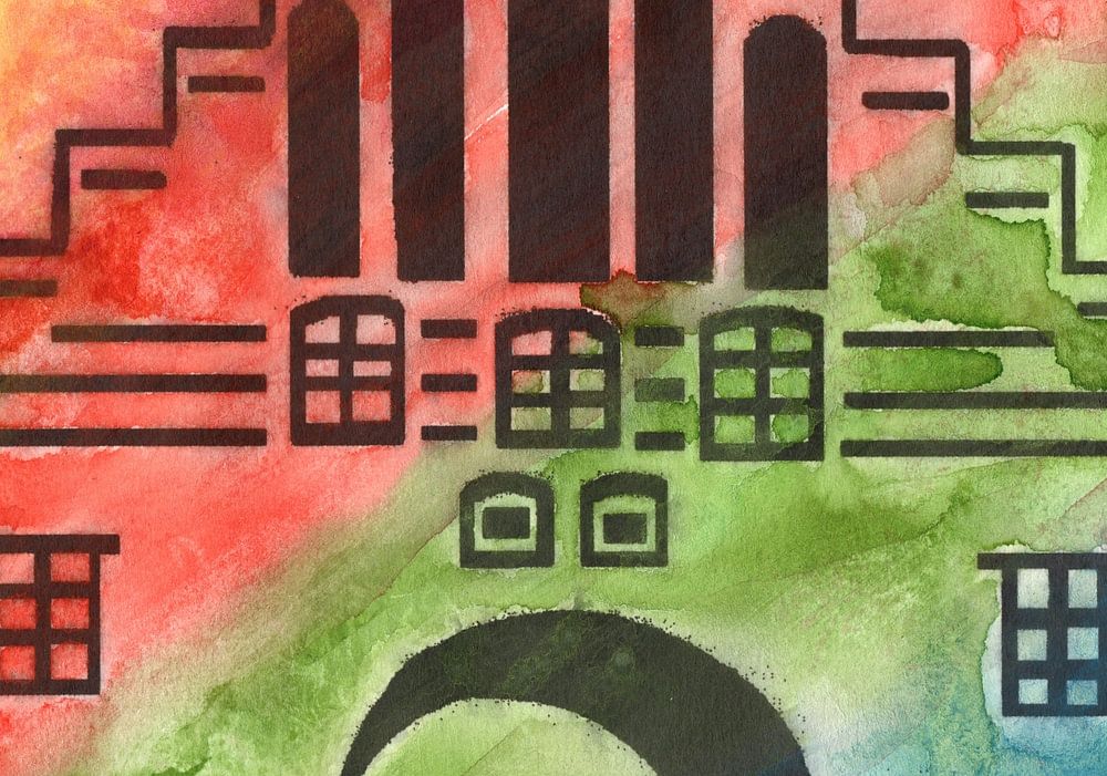 Cette aquarelle colorée montre la porte Nordertor de Flensburg sur un fond coloré. Un signe de coexistence respectueuse !