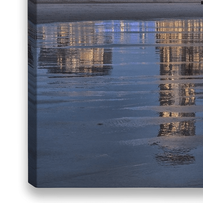 Découvrez la fascinante ligne d'horizon de Flessingue à l'heure bleue, immortalisée dans un panorama impressionnant. Cette photo a été prise depuis la mer et montre comment les lumières scintillantes de la ville se reflètent dans une fine pellicule d'eau sur le sable qui recouvre la côte à marée basse.