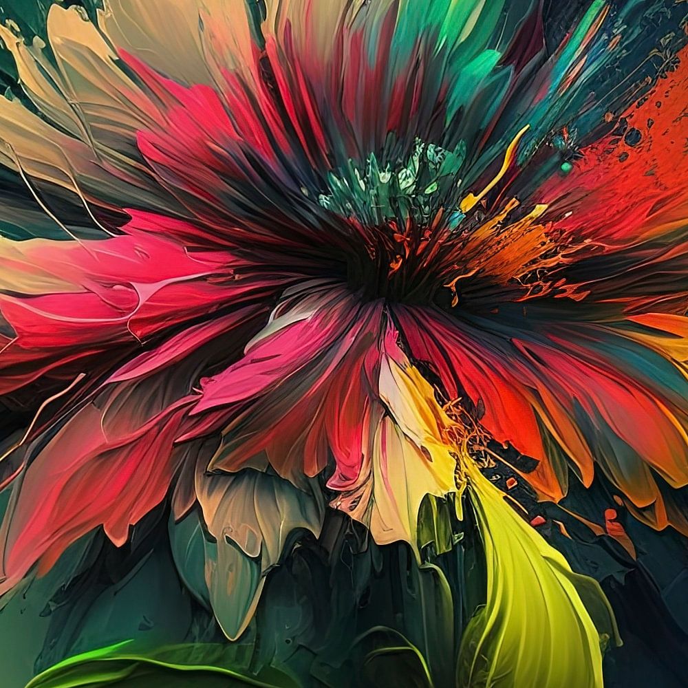 A propos de "Fleur colorée sur fond vert-orange"