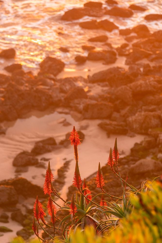 A propos de "Fleur d'aloe vera rouge au coucher du soleil"