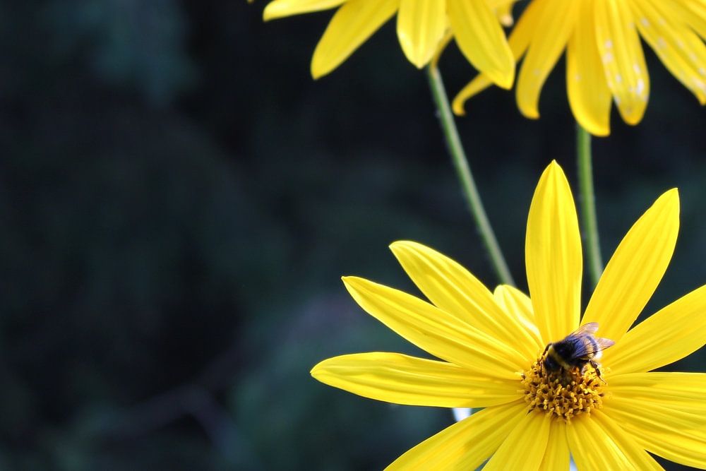 Achetez cette photo Fleur jaune avec abeille par Joery Van dun sur toile, aluminium, ArtFrame ou photographie (encadrée), impression d'art en haute qualité et tout format.