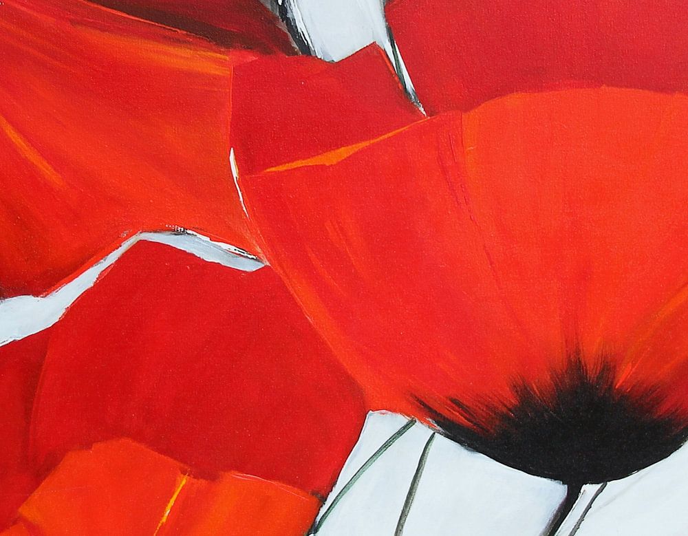 fleurs de pavot sur fond blanc, photo de fleurs, rouge comme couleur principale, peinture décorative, acrylique sur toile, intemporel, peinture murale pour salon, cabinet ou bureau