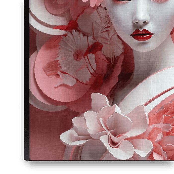 Portrait fantaisiste d'une geisha avec des fleurs roses.