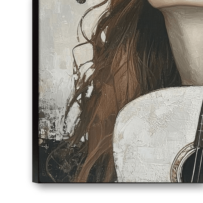 Fleurs Paix | Femme sereine avec guitare et fleurs par Peintures accrocheuses