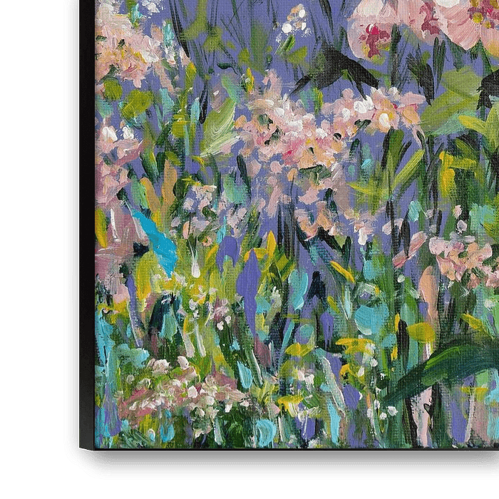 Peinte dans un style impressionniste, elle capture l'essence d'une floraison luxuriante et la chaleur émotionnelle de l'apogée de la nature.