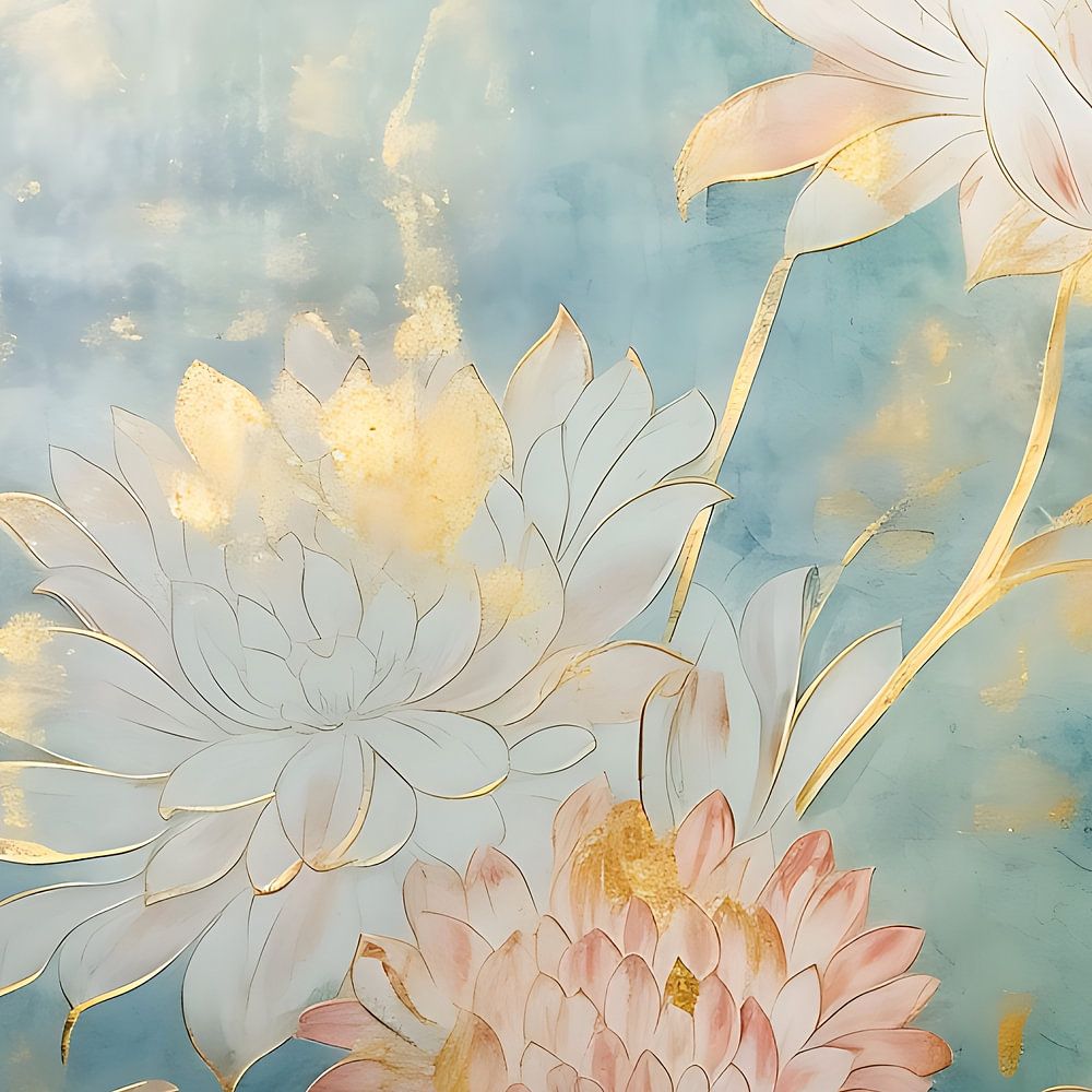 A propos de "Fleurs Vintage Petrol dans les tons rose tendre et or"