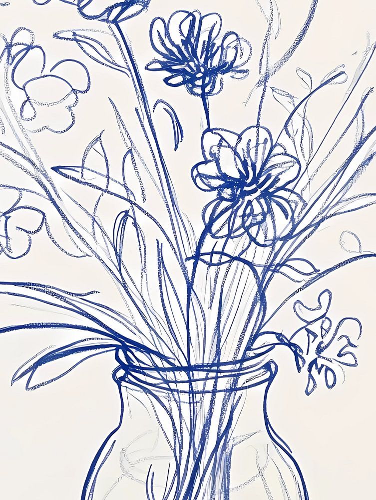 Achetez cette œuvre d'art florale Fleurs bleues dans un vase par Olga Wildrose sur toile, aluminium, ArtFrame ou photographie (encadrée), impression d'art en haute qualité et tout format.