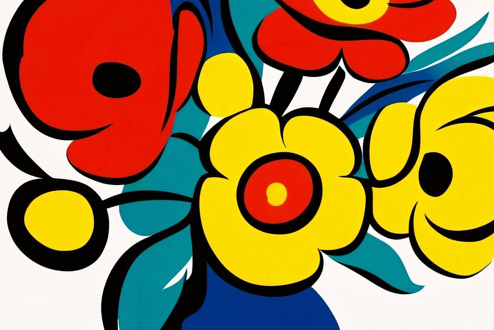 Cette étonnante illustration florale de style pop-art est parfaite pour ajouter une atmosphère vibrante à n'importe quelle pièce. Les couleurs vives rouge, jaune, bleu et vert sont soulignées par des contours noirs audacieux, ce qui lui confère un aspect ludique et moderne. Les fleurs sont rendues de manière élégante et abstraite, la simplicité du dessin créant un aspect puissant. Cette œuvre d'art s'intègre parfaitement dans les espaces de vie et de travail et attire immédiatement l'attention. Qu'il soit accroché dans un salon, une salle à manger ou un bureau, il apporte de la couleur et de l'énergie à l'espace. C'est le choix idéal pour ceux qui aiment un look moderne et joyeux dans leur maison.