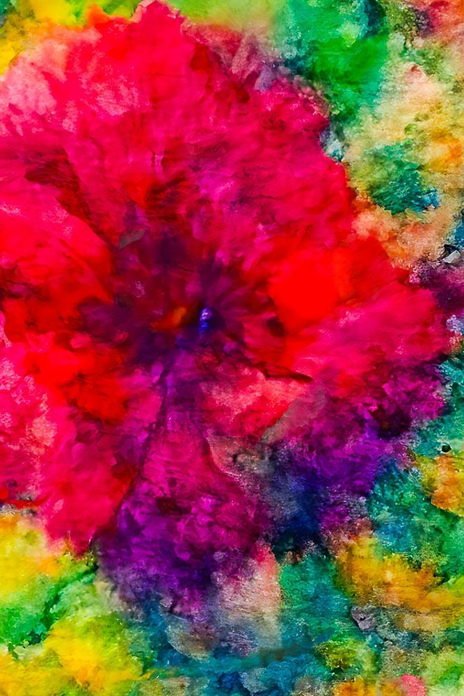 L'œuvre montre une explosion de couleurs et d'énergie, dans laquelle des rouges et des violets intenses se mêlent à des verts frais, des bleus vifs et des accents d'orange chaud. Les coups de pinceau lâches et les transitions fluides créent un sentiment de mouvement et de vie, comme si les fleurs pouvaient changer et continuer à s'épanouir à tout moment. En même temps, la peinture invite le spectateur à faire une pause et à regarder la beauté de l'éphémère et du fugace - une ode à la nature et à sa richesse infinie de formes.