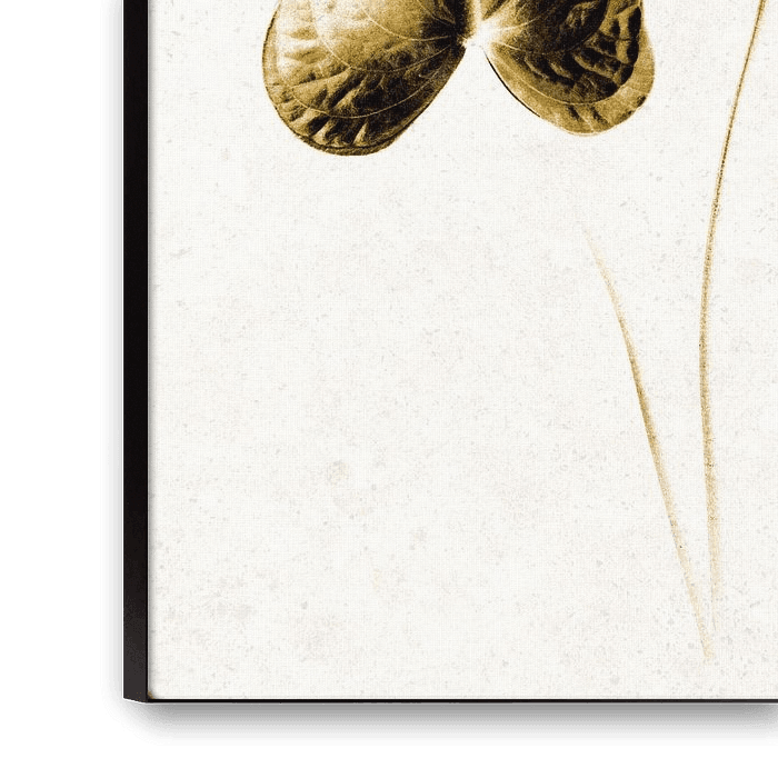 Deux délicates fleurs d'Anthurium en monochrome noir et blanc avec une lueur dorée.