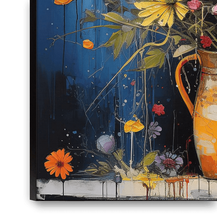 Ce tableau captivant de la collection 'Éclosion Florale' représente un mélange harmonieux de fleurs colorées en pleine floraison. L'artiste capture avec talent la danse délicate des pétales, créant une symphonie visuelle de la beauté de la nature.