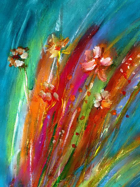 Espace de vie avec des éléments graphiques. Elle rayonne d'optimisme et de gaieté. La beauté de la nature offre des sources d'inspiration inépuisables. Peinture,Parfum,Coloré,Abstrait,Contemporain,Fleurs,Fleuri,Moderne,Fond,Ambiance,Vivant,Légèreté,Joie,Illustration,Printemps,Gaieté,Eté
