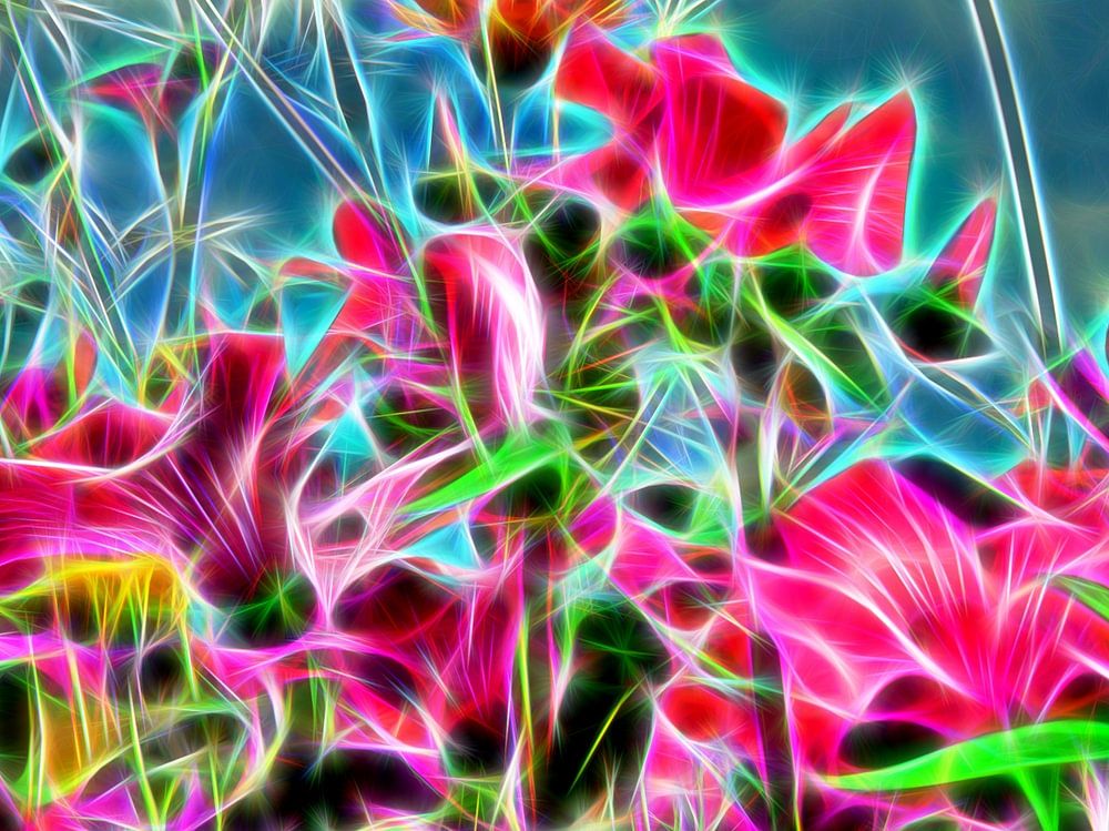 Achetez cette œuvre d'art florale Fleurs de jardin au look néon par Edgar Schermaul sur toile, aluminium, ArtFrame ou photographie (encadrée), impression d'art en haute qualité et tout format.
