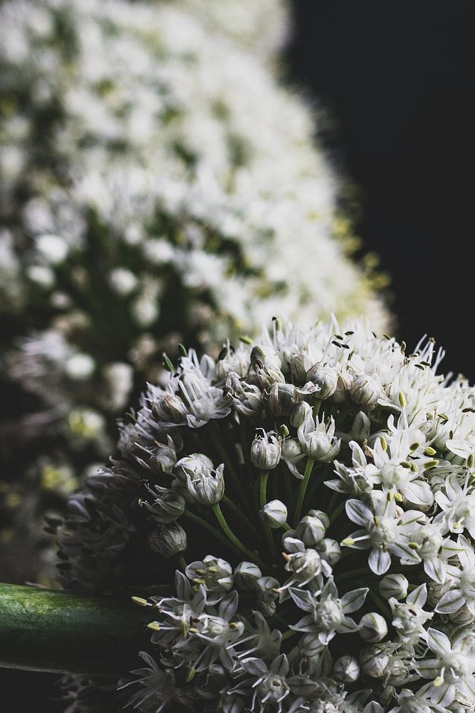 Lorsqu'un oignon est récolté trop tard, la tige se couvre d'une fleur. J'ai photographié ces dernières et ainsi, en ligne, cela donne une belle image.