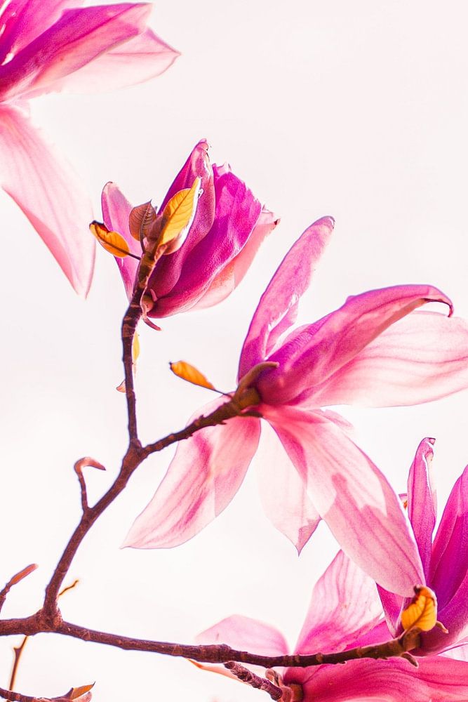 Fleurs de magnolia sur fond teinté de rose Lorsque l'hiver est terminé et que le temps se réchauffe lentement, le magnolia est l'une des premières fleurs à apparaître. De magnifiques grandes feuilles roses (qui sont d'ailleurs comestibles) brillent dans l'air. Avec un intérieur rose, cette image en tant que décoration murale ne peut pas être manquée. Choisissez un grand tirage dans le couloir ou au-dessus du canapé ou combinez-le avec mes autres fleurs roses comme le Monstera rose ou la plante à trous. Photographie par Denise Tiggelman