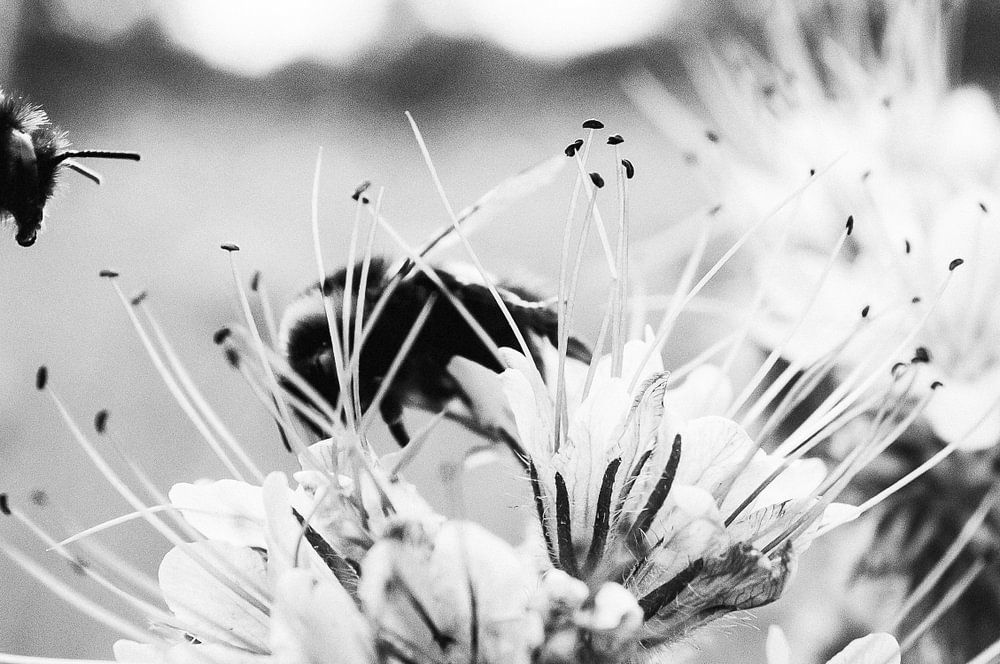 Fleurs et abeilles en noir et blanc par Nick van Dijk