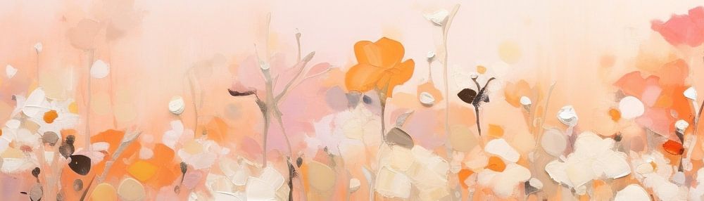 Fleurs impressionnistes | Mer de fleurs - Cette large toile offre une représentation sereine de fleurs sauvages dans un style impressionniste, avec une transition harmonieuse entre les teintes chaudes de Peach Fuzz et les crèmes et blancs doux. L'utilisation subtile de la texture confère à l'œuvre une qualité tactile, tandis que la composition horizontale expansive crée un sentiment d'espace.