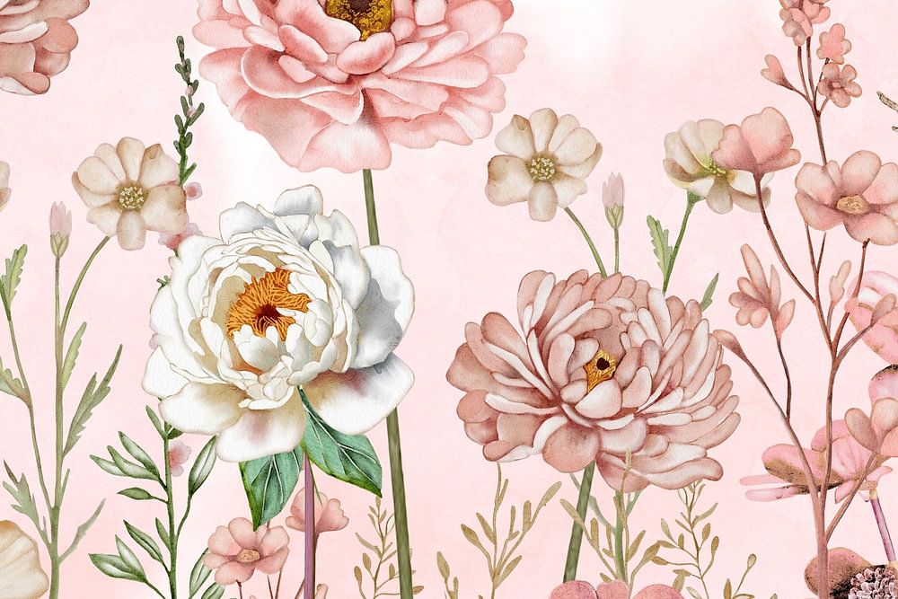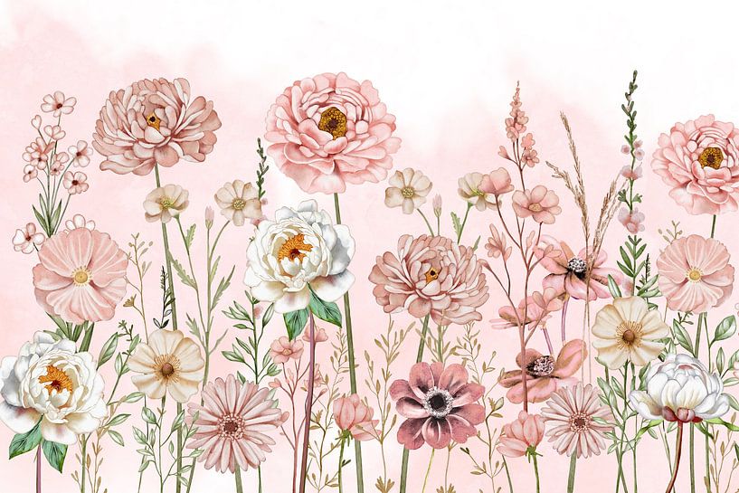 Fleurs pastel réalisées à l'aquarelle, peintes à la main et retouchées numériquement.