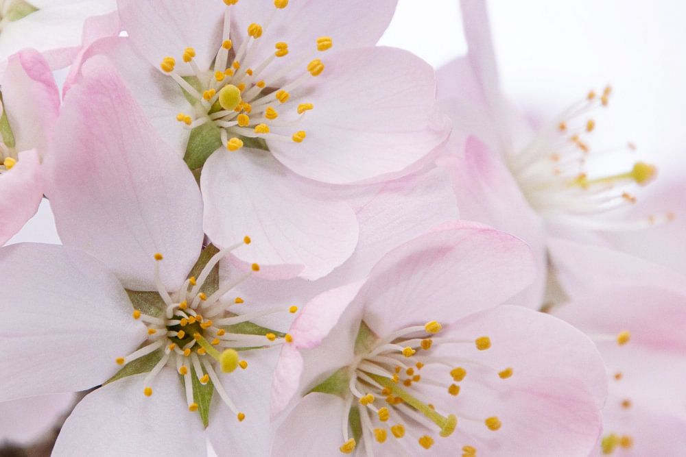 Gros plan sur des fleurs roses. La photo a été prise dans le grand arbre à fleurs. Les étamines et les pistils sont bien visibles et de couleur jaune vif.