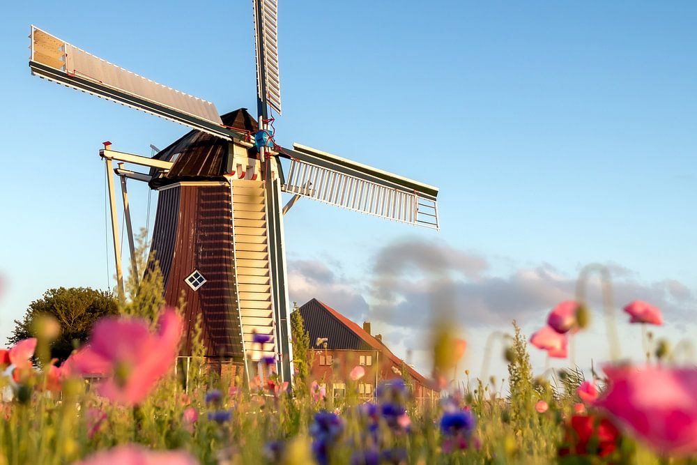 Fleurs sauvages dans le paysage de Groningue lors d'un magnifique coucher de soleil.