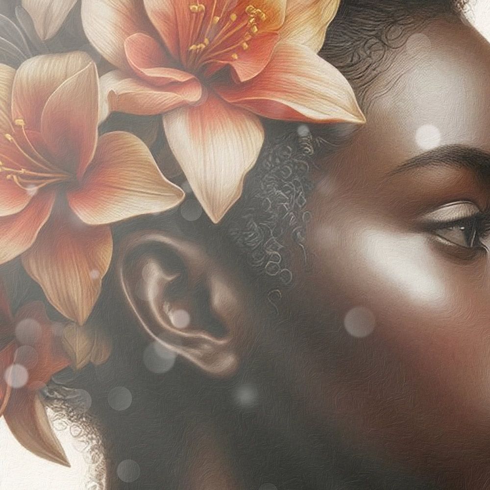 Portrait d'une belle femme avec des fleurs dans les cheveux.