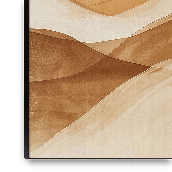 Cette œuvre d'art abstraite s'inspire du rythme naturel des paysages désertiques, exprimé par des formes fluides et superposées dans des tons chauds de sable, de caramel et d'ivoire doux. Des courbes douces se déplacent à travers la composition comme des dunes en forme de vent, créant un sentiment de profondeur, de mouvement et de continuité tranquille. Les couches translucides se superposent subtilement, permettant aux textures et aux dégradés de se fondre harmonieusement les uns dans les autres.