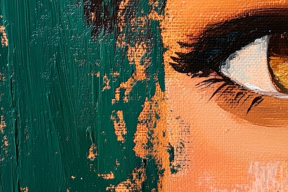 Un regard intense, capturé dans un jeu de couleurs et de textures, fascine le spectateur. Les yeux chauds et ambrés rayonnent de curiosité et de profondeur, tandis que l'arrière-plan se feuillette harmonieusement dans des tons terreux. Parfait pour un salon créatif ou un bureau inspirant, où les histoires et les idées peuvent s'épanouir.