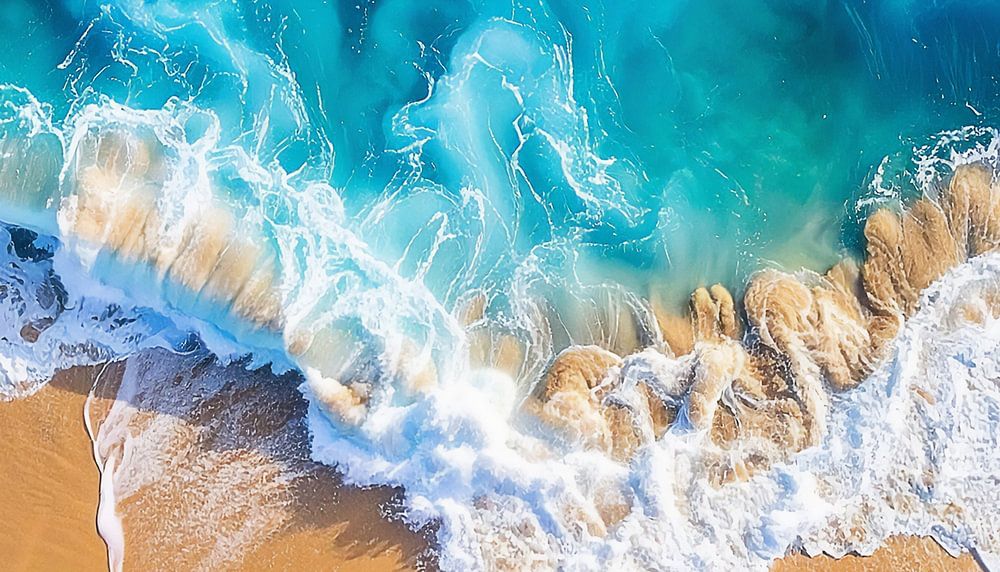 Acheter ce art numérique Fond d'écran aérien avec vagues bleues par Mustafa Kurnaz sur toile, aluminium, ArtFrame ou photographie (encadrée), impression d'art en haute définition et tout type de format.