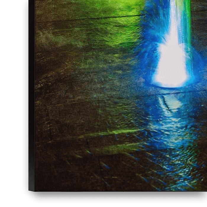 Achetez cette œuvre d'art abstraite Fontaine éclairée la nuit par ManfredFotos sur toile, aluminium, ArtFrame ou photographie (encadrée), impression d'art en haute qualité et tout format.
