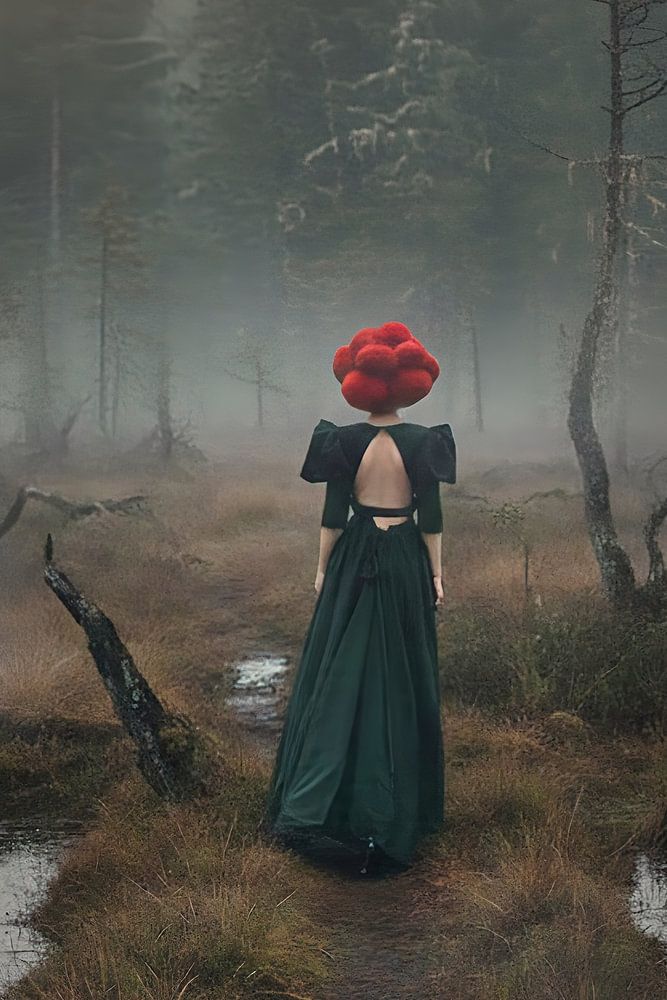 La dame solitaire de la Forêt-Noire, enveloppée d'un vert forêt…