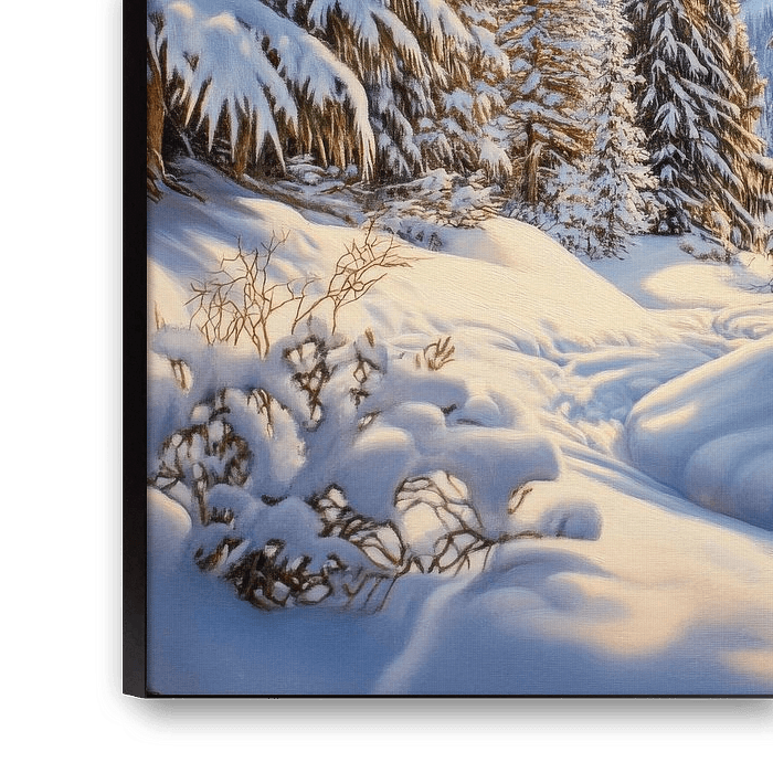 Une mystérieuse forêt d'hiver se déploie, où d'imposants conifères se dressent majestueusement au-dessus d'une couche de neige scintillante. Une douce lumière filtre à travers les branches et transforme le paysage en un tableau féerique. La fraîcheur et le silence invitent à explorer les traces dans la neige et à se perdre dans l'idylle hivernale.