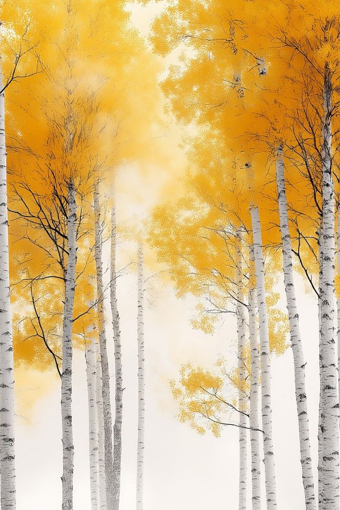Acheter ce illustration Forêt de bouleaux en automne par ARTemberaubend sur toile, aluminium, ArtFrame ou photographie (encadrée), impression d'art en haute qualité et tout format.