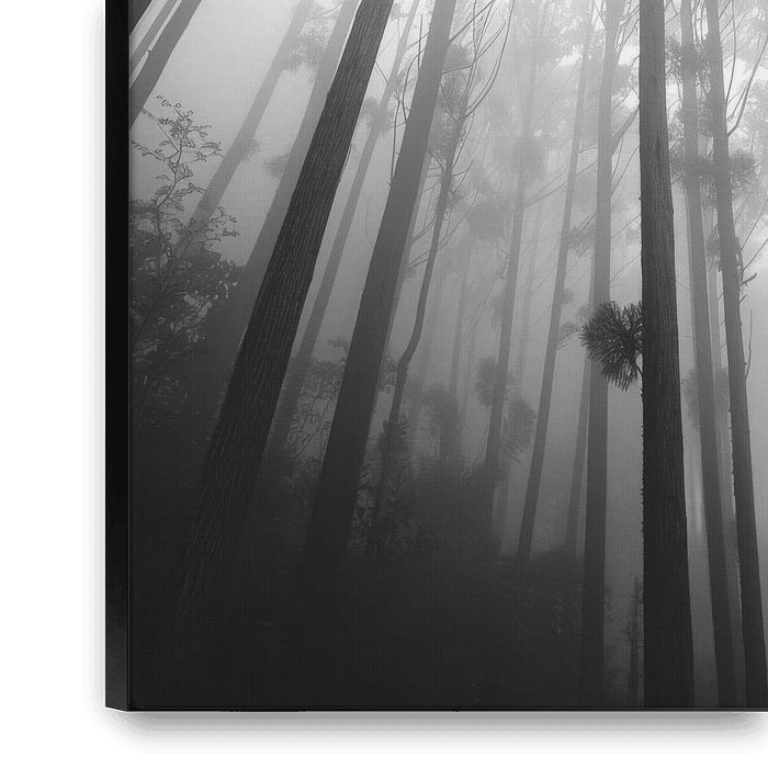 Achetez cette œuvre d'art de paysage Forêt de brouillard en noir et blanc par Poster Art Shop sur toile, aluminium, ArtFrame ou photographie (encadrée), impression d'art en haute qualité et tout format.