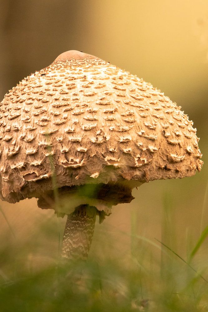 L'image originale était un peu plate et peu chaleureuse. Or, l'automne est précisément la saison des couleurs chaudes. J'ai donc donné à ce champignon un bel éclat chaud en post-traitement. Le soleil à l'arrière-plan est en partie réel, mais il a été rehaussé et coloré de façon chaleureuse par l'étalonnage. Les touffes d'herbe qui semblent presque translucides ajoutent une dimension supplémentaire à l'image.