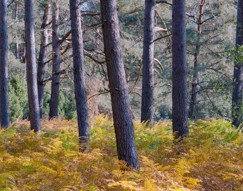 Beaucoup d'arbres avec des fougères décolorées