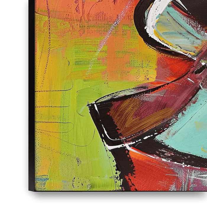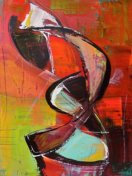 Formes abstraites | Formes fluides - Il s'agit d'une peinture abstraite aux formes fluides et aux couleurs vives qui lui confèrent un aspect dynamique, où la combinaison du noir, du rouge et du turquoise attire l'attention.