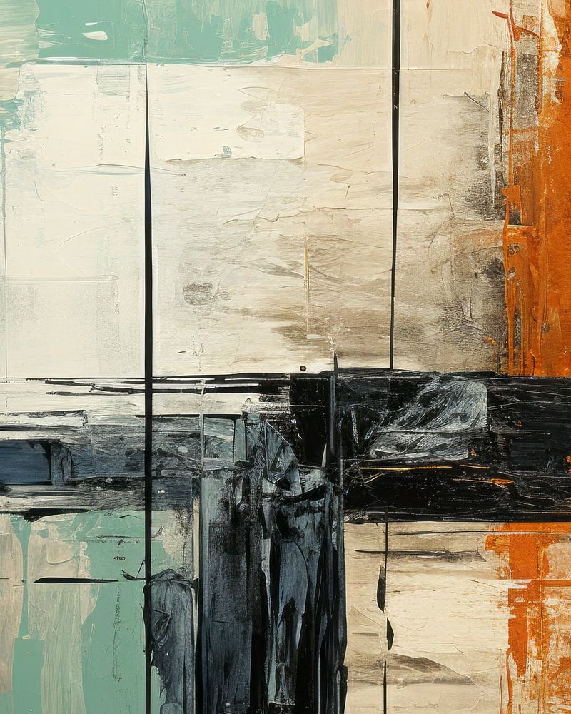 Formes et lignes modernes et abstraites en vert, blanc, noir et orange. Une œuvre extraordinaire sur votre mur ! Magnifique dans n'importe quel format et sur n'importe quel matériau.