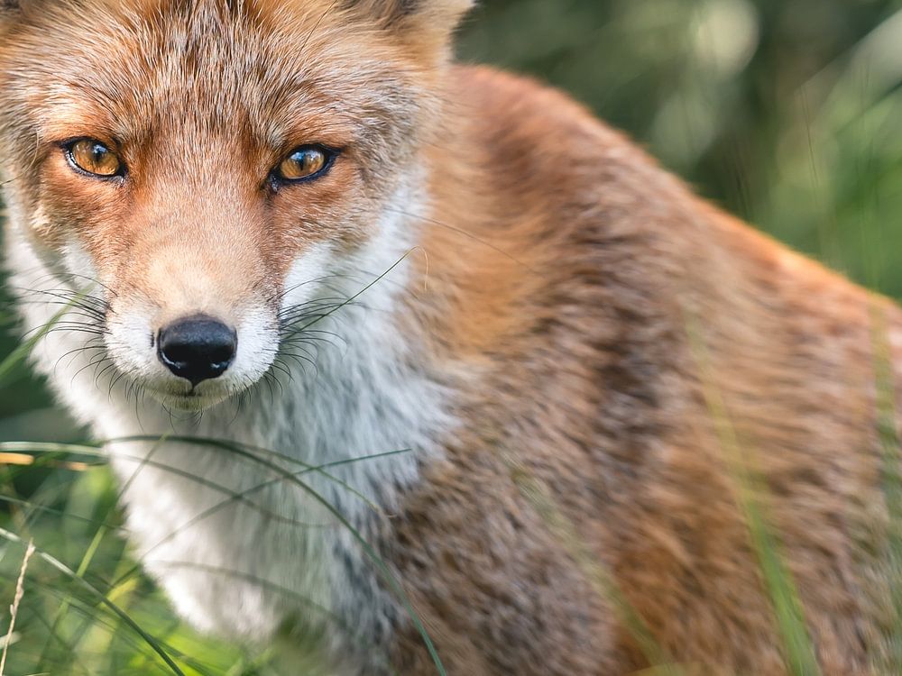 Superbe expression du renard. Concentrez-vous sur les yeux pour qu'ils ressortent bien sur la photo.