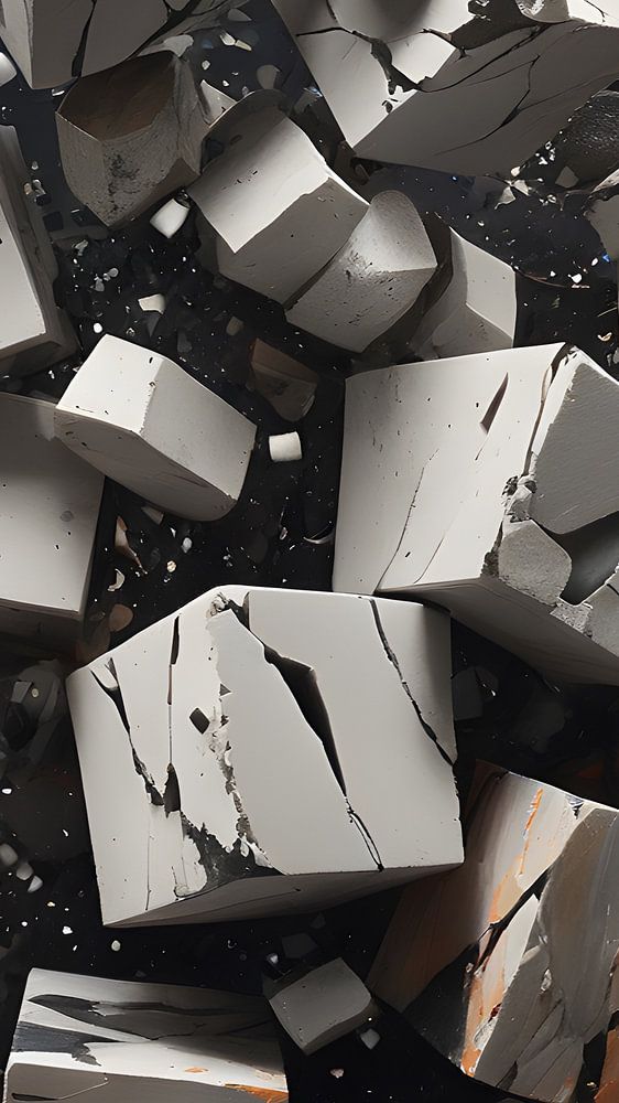 Faisant partie d'une série d'œuvres d'art, cette œuvre présente une représentation dynamique et explosive de cubes à différents stades de fragmentation et de mouvement. Les cubes, rendus dans une palette de blanc, de gris, de noir et d'orange, flottent et se fracturent dans un espace tridimensionnel, créant un sentiment d'énergie et d'impact. Chaque composition de la série combine des éléments d'abstraction géométrique et d'art futuriste, avec une influence évidente du cubisme et du style d'artistes tels que Kazimir Malevich et Piet Mondrian. Les lignes épurées et les arêtes dures des cubes sont contrastées par les divisions aléatoires et chaotiques, créant une tension captivante entre l'ordre et le chaos.