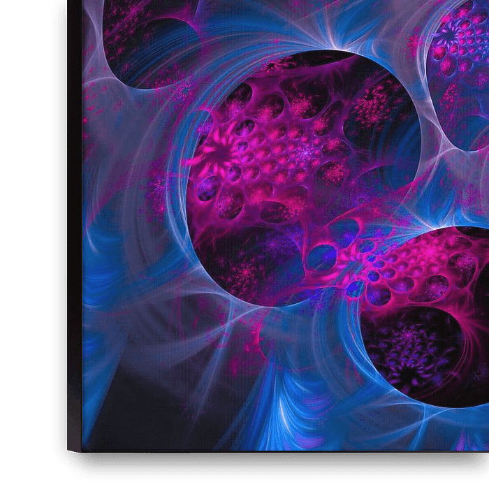 Wunderschönes Fraktal in blau und pink. Fraktale sind mathematische Kunst, basierend auf Formeln. Mit Hilfe moderner Software entstehen prächtige Kunstwerke.