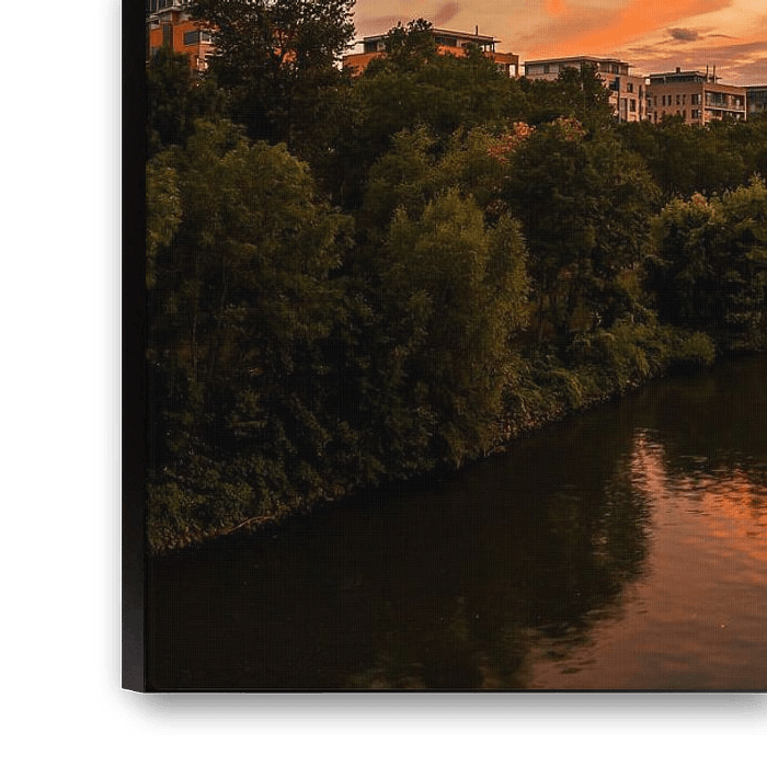 Achetez cette photo Francfort-sur-le-Main - La ligne d'horizon au coucher du soleil par Frank Herrmann sur toile, aluminium, ArtFrame ou photographie (encadrée), impression d'art en haute qualité et tout format.
