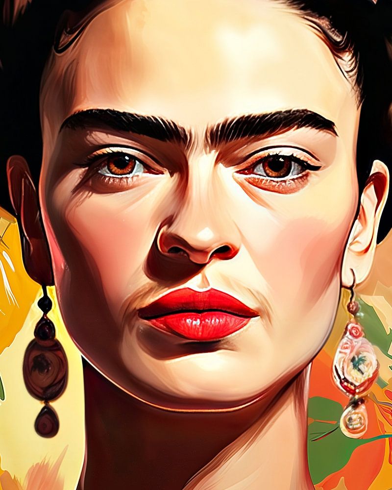 Frida avec des roses dans les cheveux. Très coloré, multicolore.