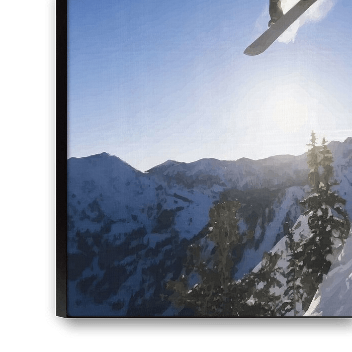 Achetez cette œuvre d'art de paysage Frissons extrêmes en snowboard par Randy Barbara sur toile, aluminium, ArtFrame ou photographie (encadrée), impression d'art en haute qualité et tout format.