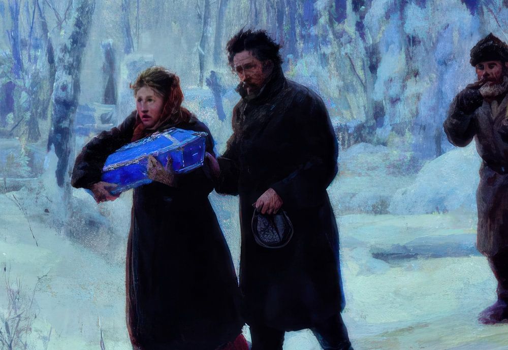 Funeral of Firstborn de Mykola Yaroshenko est une peinture poignante et émouvante qui plonge dans les profondeurs du chagrin et de la perte humaine. L'œuvre représente une mère éplorée tenant le cercueil de son enfant décédé, entourée du père et de l'Undertaker, dans un sombre cortège funèbre.