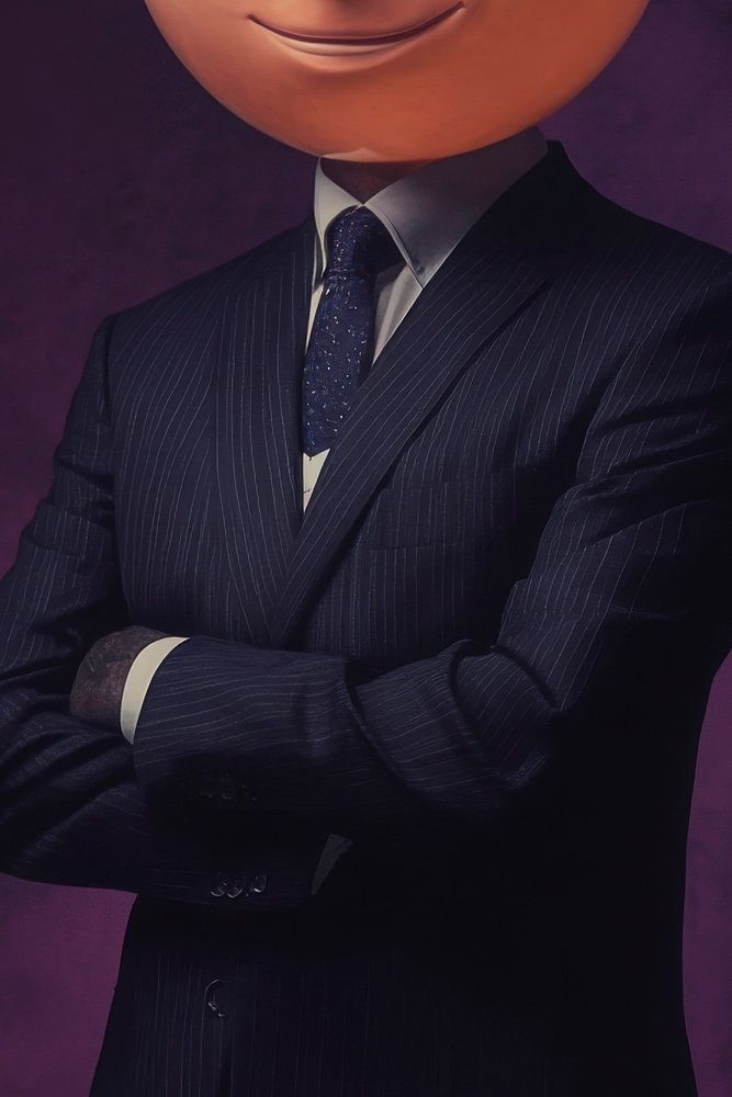 Avec un costume sobre et élégant et une tête surdimensionnée en plastique, ce personnage dégage un mélange bizarre de sérieux et d'espièglerie. Le visage souriant, dont les yeux sont ornés d'une croix marquante, prête à sourire et suscite des questions sur l'identité et l'absurdité dans la société. Une contradiction visuelle fascinante !