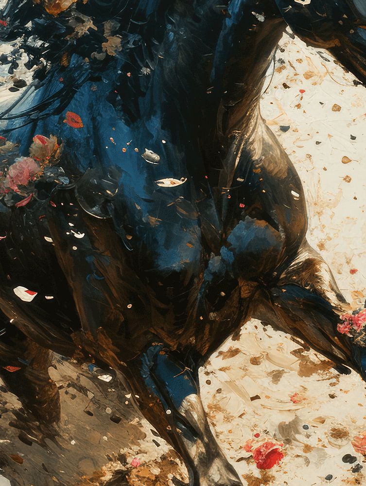 Galloping Beauty" capture la puissance impétueuse d'un cheval au galop, enveloppé d'un tourbillon de fleurs colorées. La peinture éclabousse la toile, suggérant un mouvement dynamique, tandis que les pétales semblent danser autour de l'animal puissant. Le cheval, avec sa robe brillante et son regard concentré, est l'incarnation de la liberté et de l'élégance naturelle. Cette peinture, qui est un régal pour les sens, offre un point de vue unique sur la fusion de la grâce animale et de la beauté éphémère des fleurs en pleine éclosion. Un must pour les amoureux des chevaux et de l'art naturel, parfait pour ajouter une touche vibrante et sophistiquée à n'importe quel espace.