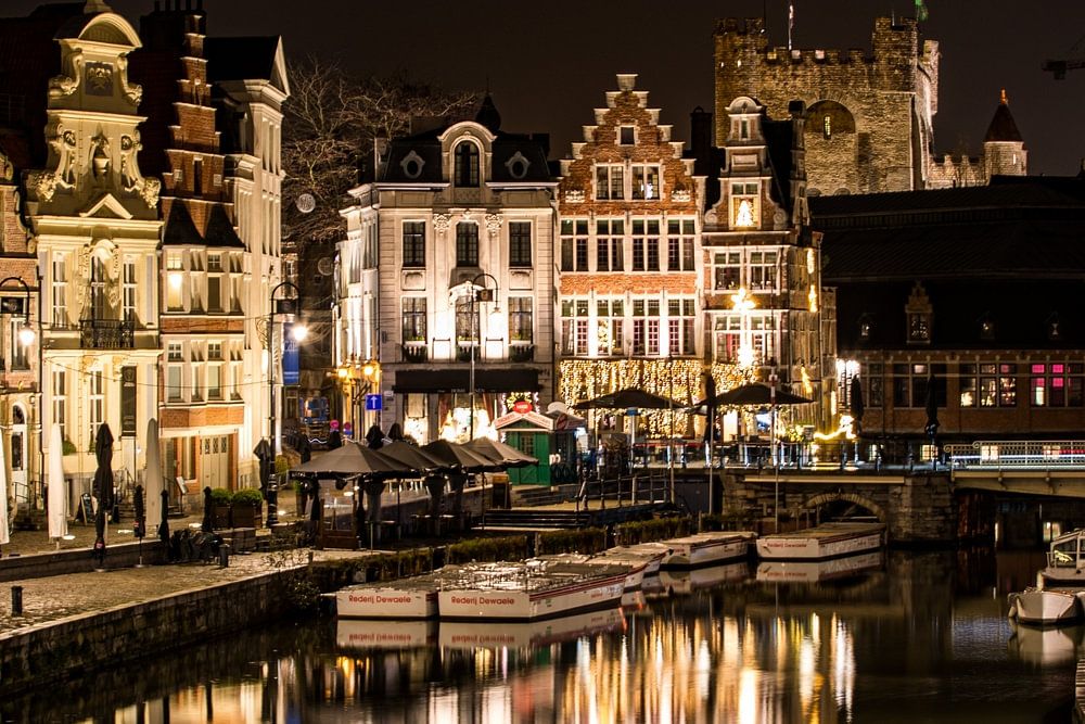 Les rues de Gand sont magnifiques, mais la combinaison avec l'eau rend la ville complète. Cette photo a été prise tard dans la soirée et l'éclairage du soir donne encore plus de cachet à cette ville atmosphérique.