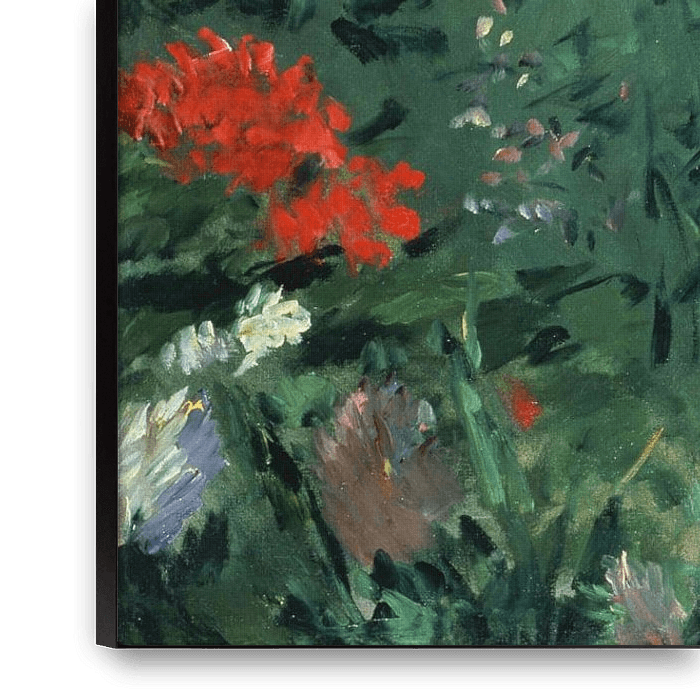 Durant l'été 1876, Manet se rend dans le petit village de Montgeron, en Seine-et-Oise, à l'est de Paris, à l'invitation d'un mécène des impressionnistes, l'homme d'affaires Ernest Hoschedé. (Alice, la femme de Hoschedé, est devenue plus tard la seconde épouse de Monet). Pendant sa visite de deux semaines, Manet a peint cette œuvre et plusieurs autres pour décorer la maison de campagne Hoschedé. Cependant, Manet rentre à Paris avec des œuvres inachevées qui restent dans son atelier jusqu'à sa mort en 1883. Cette œuvre montre Jacques, le fils aîné parmi les six enfants d'Hoschedé, dans le jardin fleuri de la maison Hoschedé. Le tableau montre également un vase décoratif qui apparaît occasionnellement dans d'autres œuvres de Manet.